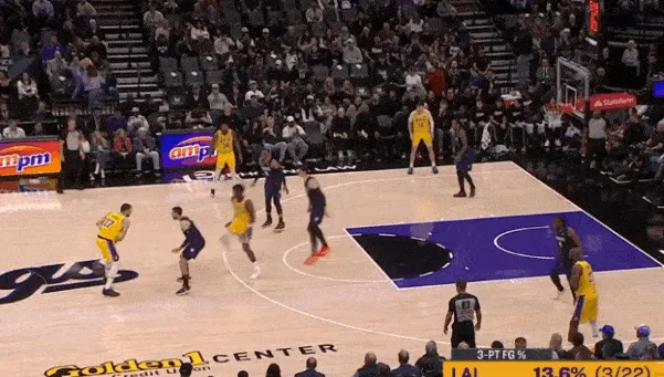 东契奇交球给詹姆斯再上前接其手递手回传完成“Get“配合后立即衔接和艾顿的挡拆配合,行进间将威少摆脱在身后面对沉退的雷诺,炸球急停后直接起抛投惩罚。