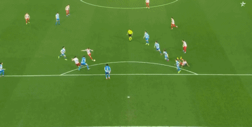 第77分钟,球碰到拉科球员腿上后出了边线,裁判判给拉科球权,西蒙尼不满