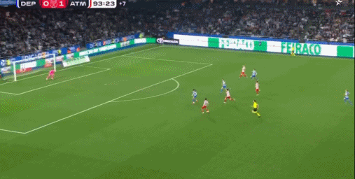 第90+4分钟,马竞反击,巴里奥斯单刀射门被帕雷尼奥挡出